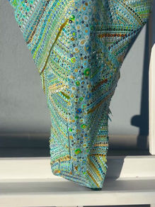 Sculpture from palm bark, acrylic painting, mounted on a metal stand